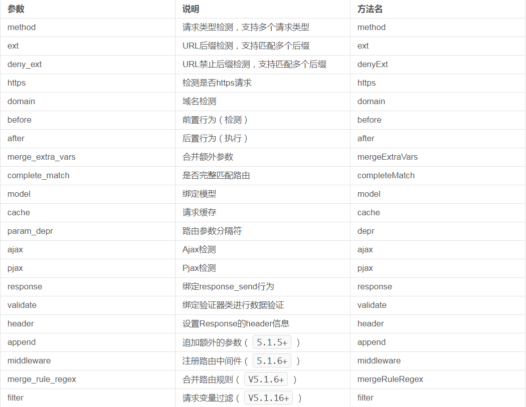 Route::rule('路由表达式','路由地址','请求类型','路由参数','变量规则');